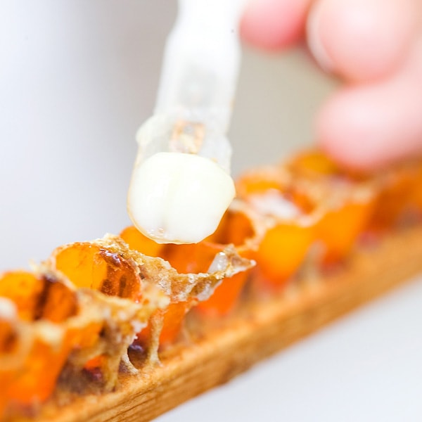 ローヤルゼリーは水分が多いため、長く保管できずに、冷凍保存をしなければすぐに発酵・腐敗などの変質がおこります。そしてローヤルゼリーの主成分は、熱や加工に弱いたんぱく質。そのまま食べると、胃液により主成分のたんぱく質が破壊される恐れがあるのです。